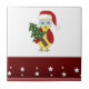 Eule in einer Weihnachtsmannmütze mit Weihnachtsba Fliese