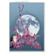 Ein Gemälde einer Barnschale, die auf dem blühenden Baumzweig eines Obstbaumes steht, mit Vollmond im Hintergrund. Artwork Copyright ©2018 Kimberly J Tilley.