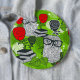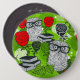Eule in rote Rosen Button