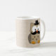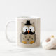 Diese niedliche kleine Eule ist mit seinem schwarzen dressy Hut und schwarzen Lenkstangenschnurrbart so entzückend. Großes Geschenk für den Schnurrbartmann oder kleiner männlicher Junge oder gerade jedermann, der niedliche Eulen- und TierCartoons mit lustigen Gesichtern schätzt. Brauner Hintergrund Sandys und braune Eule mit dem orange Schnabel. Alles entwirft Copyright © www.CuteComfy.com 2012