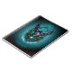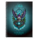 Eule mit magischen Elementen. Das Design besticht durch eine beeindruckende, stilvolle Eule, deren breite Flügel in einer lebendigen Farbpalette lila, blau und weiß gestaltet sind. Die Eule strahlt eine majestätische Präsenz aus, während ihre durchdringenden gelben Augen direkt auf den Betrachter schauen und ein Gefühl von Intensität und Mysterium schaffen. Intrikierte, wirbelnde Muster entfalten sich um die Eule herum, erinnern an magische Symbole und geben dem Gesamtbild eine mystische Aura.