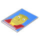 Inspirieren des Notizbuches mit einer Eule, die in einem roten Buch gegen blauen Hintergrund sitzt. Sie können Ihren Text addieren. Entwurf durch AlmaWad.