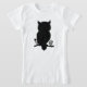 Ein Scherenschnitt einer Eule, die auf einem Ast, zwischen einer Blüte und Blättern, sitzt.