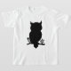 Ein Scherenschnitt einer Eule, die auf einem Ast, zwischen einer Blüte und Blättern, sitzt.