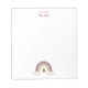 Ein kleines Notizblock für Bibliothekare oder Lehrer mit einer kleinen Eule, die auf einem Buch unter einem Regenbogen stehend ist. Personalisieren Sie es mit Ihrem Text und einem Namen. Dieses Design ist auch auf klebrigen Noten erhältlich. © ArianeC Illustrations-Alle Rechte vorbehalten