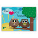 Diese Grußkarte kennzeichnet ein niedliches Eulenpaar, das in einem Baum gehockt wird!