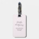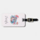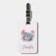 Ein Gepäckanhänger mit dem Bild eines Eulenpaares in der Liebe, das auf einem Zweig sitzt. Umgeben von hübschen blauen, grünen und rosa Blumen.