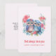 Valentinstag-Karte mit dem Bild eines Eulenpaares in der Liebe, das auf einem Baumzweig zusammensitzt. Umgeben von hübschen blauen, grünen und rosa Blumen.