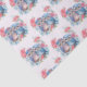 Gewebepapier mit einem Eulenpaar in der Liebe, das auf einem Zweig sitzt. Umgeben von hübschen blauen, grünen und rosa Blumen.