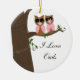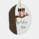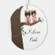 Ein niedliches Design mit einem großen Baum mit zwei kleinen Eulen an der Extremität. Braune Federn, rosa Flügel und Schnüren und große schwarze Augen. Das Sprichwort 'I Liebe Owls' kann nach Wunsch geändert werden.