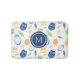 Modernes und des Spaßes helles Limones grünes, dunkles Marineblau, orange und weiße Eule und kundenspezifische Badematte des Federillustrationsmusters mit personalisiertem Monogramm. vervollkommnen Sie für das Badezimmer eines Kindes.