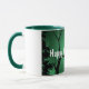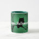 Bild der Silhouette einer gespenstischen Eule wird auf dieser Kaffee-Tasse mit Wünschen für ein glückliches Halloween gekennzeichnet. Ob Sie diese Tasse für Apfelapfelwein, Kakao oder Tee benutzen, werden Sie in Halloween-Art trinken!