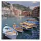 Europa, Italien, Vernazza. Hell bemalte Boote Fliese