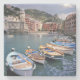 Europa, Italien, Vernazza. Hell bemalte Boote Steinuntersetzer