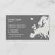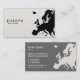Eine Visitenkarte mit einer europäischen Landkarte mit digitaler Ölfarbe auf der Textur der Leinwand (siehe erweiterte Fassung). Firmendetails auf der Vorderseite mit Namen und Kontaktdaten auf der Rückseite auf einer grauen Tonversion des Designs.