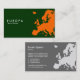 Eine Visitenkarte mit einer Karte von Europa. Firmendetails auf der Vorderseite mit Namen und Kontaktdaten auf der Rückseite auf einer grauen Tonversion des Designs.