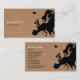 Eine Visitenkarte mit einer Karte von Europa. Firmendetails auf der Vorderseite mit Namen und Kontaktdaten auf der Rückseite mit dem gleichen europäischen Kartenmotiv.
