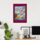 Ein schönes Bild eines touristischen Posters für das Europa. Das bunte Poster zeigt viele malerische Gebäude und Geschäfte. Dieses Poster wäre in jedem Zimmer perfekt.