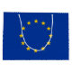 In diesem Design ist die "Flagge Europas" (oder "Europäische Flagge") zu sehen, ein offizielles Zeichen, das von zwei verschiedenen Organisationen, dem Europarat (CoE) und der Europäischen Gewerkschaft (EU), verwendet wird. Es besteht aus einem Kreis von zwölf fünfzackigen goldenen Sternen auf einem azurblauen Hintergrund. Die Fahne wurde erstmals 1955 entworfen und später vom Europarat offiziell als Symbol für ganz Europa adoptiert. Der Europarat drängte darauf, von anderen europäischen Organisationen adoptiert zu werden, und 1985 haben die Europäischen Gemeinschaften (EG) das Emblem adoptiert; die EU hat es auch bei seiner Gründung im Jahr 1993 geerbt.