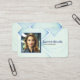 This front business card design features a photo placeholder with template name and occupation. The back includes coordinated design and colors with text fields for the business name and details. Fill in the personalize fields, remove text or use the edit design tool to select a font style, size, and color you like. Replace the placeholder photo with your square format photograph on the front. The placeholder photo is ai generated courtesy pixabay.com.
