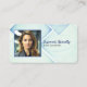 This front business card design features a photo placeholder with template name and occupation. The back includes coordinated design and colors with text fields for the business name, details and QR code. Fill in the personalize fields, remove text or use the edit design tool to select a font style, size, and color you like. Replace the placeholder photo with your square format photograph on the front and your QR code link on the back. Use the QR Code link to sent clients to your website reviews, photographs or other business related link.The placeholder photo is ai generated courtesy pixabay.com.