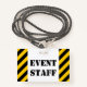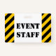 Dieses Abzeichen-Design ist mit einem schwarz-gelben gestreiften Muster und der Meldung "EVENT STAFF" versehen. Es könnte vielleicht genutzt werden, um Personen zu identifizieren, die für die Betreiber einer Veranstaltung arbeiten.