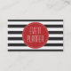Dieses Chic u. noble Event-Planer-Visitenkarte kennzeichnet einen klassischen horizontalen gestreiften Schwarzweiss-Hintergrund. Auf den Hintergrund ist ein heller roter dekorativer Kreis mit einem kundengerechten Text, der "Event-Planer" liest. Die Rückseite der Karte ist einfaches Weiß mit Raum für Ihre Namen-, Stellenbezeichnung- u. Kontaktdetails. Dieses ist die idealen Visitenkarten für jedermann im Falle oder Hochzeitsplanungsindustrie.