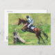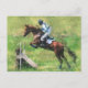 Ein Ölgemäldedesign, das aus einem Foto eines Pferdes und eines Reiters besteht, der in einem Langlauf-Event gegeneinander antritt.