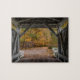 Blick auf die wunderschönen Herbstfarben von innen der Everett Road Covered Bridge im Cuyahoga Valley National Park in Ohio.