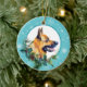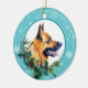 An der Vorderseite dieses Holiday-Ornaments befindet sich ein schönes Porträt eines deutschen Schäferhundes, der aus einem heiligen und immergrünen Teig herausschaut. Rote Beeren und Kiefernkonen schmücken die Kiefer- und Kiefernspieße. Das Bild wird auf einem weißen Kreis gerahmt durch ein Retro-blaues Schneeflockenmuster platziert. Die Rückseite des Ornaments hat den gleichen Hintergrund und Kreis mit Ihrem benutzerdefinierten Text in blau auf einem weißen Hintergrund. Perfekt für alle, die ihr Herz durch ein GSD verloren haben.