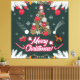 Das ist ein fröhliches Weihnachtsdesign mit goldenem Weihnachtsbaum, Weihnachtsbeleuchtung, Schneeflocken und dunkelgrünem Hintergrund mit tausenden Sternen.