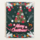 Das ist ein fröhliches Weihnachtsdesign mit goldenem Weihnachtsbaum, Weihnachtsbeleuchtung, Schneeflocken und dunkelgrünem Hintergrund mit tausenden Sternen.