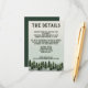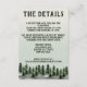 Elemente: Aquarellmalerei, Gradientenhintergrund, lustige Outdoorsserf und Schriftzypografie. Farben: Jäger grün, waldgrün, weiß, weiß, weiß, schwarz Themes: Berge, Wald, Natur, Camping, Wandern, Outdoorsy, rustikal, whimsical, botanisch, Waldland, Land. Sammlung: Evergreen Mountain Forest Green Black Wedding Suite. Art des Produkts: Einschließkarte
