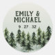 Evergreen Mountain Forest Green White Black Names Runder Aufkleber