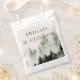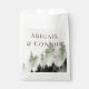 Elemente: Wasserfarbene Bergszene mit eleganten, zeitgenössischen Serif-Schriftart. Farben: grün, Jäger grün, Hochland grün, weiß, weißer Nebel, grau, Schiefer. Themen: modern, im Freien Hochzeit, Berge, rustikale, holzige, outdoorsy, Wald, Wald, Natur, Wandern, felsige Berge, Sierra nevadas, blaue Bergketten, Smokey Berge. Sammlung: Evergreen Mountain Mist Rustic Winter Wedding Collection. Art des Produkts: Gefälligkeitsbeutel