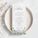 Evergreen Rustic Mountain Forest Boho Wedding Menü Menükarte