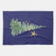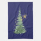 Ein Aquarellbild eines immergrünen Baumes, in dem goldene Sterne umherlaufen, bildet vor dunkelblauem Hintergrund ein modernes Küchentuch mit traditionellen Bildern. Schön und modern.