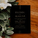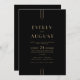 Diese Schwarz-Gold-Hochzeitseinladung der Everly Collection besticht durch Pariser Typografie und raffinierte Deko-Linien. Es Set eine schicke, formale Stimmung und ist ideal für moderne Hochzeiten im Abend.