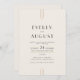 Diese raffinierte Art Deko doppelseitige Hochzeitseinladung aus der Everly Collection bietet minimalistische schwarze Typografie und goldene Linienakzente auf einem weichen cremefarbenen Hintergrund. Es ist perfekt für einen eleganten, zeitlosen Look. Rett Papier durch einen QR-Code für den Gast, um Details, UAWG oder beides anzuzeigen.
