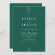 This double sided wedding invitation from the Everly Collection features a deep emerald green design with refined art deco line accents and elegant retro typography. It's modern, minimalist, and formal—perfect for an editorial-inspired wedding.