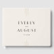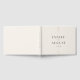 Dieses edle Deko HochzeitsGästebuch aus der Everly Collection besticht durch minimalistische schwarze Typografie und goldene Linienakzente auf einem weichen cremefarbenen Hintergrund. Es ist perfekt für einen eleganten, zeitlosen Look. Personalisieren Sie die Titelseite mit den Namen des Paares und dem Hochzeitstag.