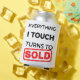 Everything I Touch Turns To Sold design. This is a short funny quote which is great as Realtor Appreciation Gifts. Also suitable as Real Estate Gifts For Realtors.
