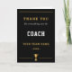 Show your appreciation with this elegant “Thank You Coach” card featuring a classic trophy design and the message “for everything you do.” Designed with a clean black and gold layout, this card is perfect for teams and parents looking for a meaningful coach gift without needing a photo. Ideal for end-of-season thank you gifts, coach appreciation, and sports team celebrations.