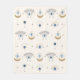 Das böse Auge, ein Symbol für Schutz und positive Energie, ist kunstvoll mit Himmelselementen vermischt, was diese Decke nicht nur zu einem gemütlichen Accessoire macht, sondern auch zu einem mächtigen Talisman, der die Negativität abhebt und Ruhe in Ihren heiligen Raum einlädt. Diese wunderschön gestaltete Decke ist mit einer Reihe von fesselnden bösen Augenmotiven geschmückt, die mit glänzenden Monden, funkelnden Sternen und glitzernden Kristallen geschmückt sind. Alle diese Elemente bilden eine faszinierende Mischung aus mystischer Anziehungskraft. Die Farbpalette ist von tiefer Blues und heller Blues, strahlendem Gold und ätherischen Weißen. Es ist die perfekte Wurfgröße.