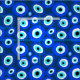 Kühne und helle Muster von mediterranen kreisförmigen Augen. Die alten Griechen glaubten, das Auge würde böse Glares abwehren. In der Moderne wird es als Glücksbringer oder Talisman angesehen. Mehr Augenmuster sind in meinem Geschäft erhältlich. Klassisches blaues Muster.