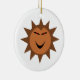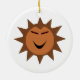 Dieses Ornament zeigt einen Cartoon eines bösen braunen Igels, der in einer Kugel mit scharfen, braunen, ihn umgebenden Klecksen aufgerollt ist. Es hat dämonische rote Augen und ein bedrohliches schwarzes Grinsen. Dieses einfache Design wird Kinder und Erwachsene gleichermaßen ansprechen.