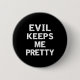 Evil Keeps Me Pretty Funny Humor Quote Woman Button