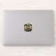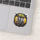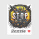 Dieser Aufkleber hat ein böses Stoppschild darauf.