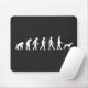 Evolution Silhouetten vom Affen zum modernen Menschen mit Windhund an der Leine in Weiß.