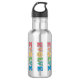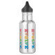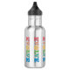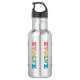 Peace promoting water bottle. The design is made of colorful letters that spell out evolve with the letter O replaced with a round peace symbol. These bottles are decorative and help you promote peace and moving up from hate and wars to peace around us and in the world as a whole.